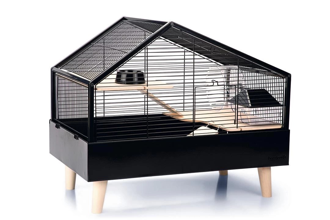 De Beeztees Ayaz knaagdierkooi is perfect geschikt voor onder andere hamsters en ziet er fantastisch uit. Deze knaagdierkooi is gemaakt van metaal en is voorzien van een metalen onderbak met houten voeten.