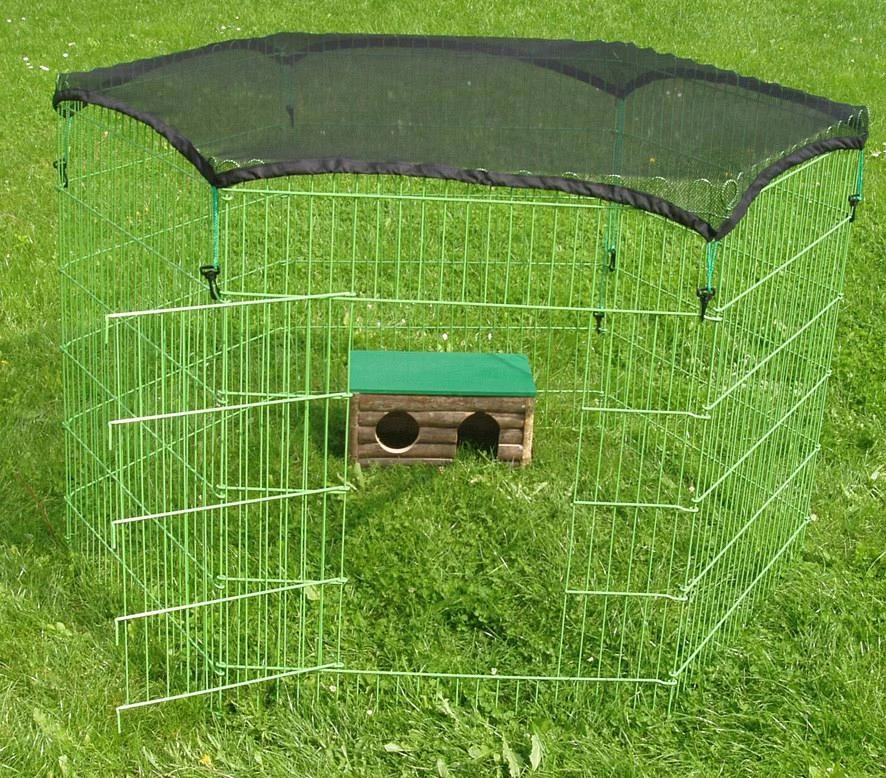 Het afdeknet voor de knaagdierren voorkomt dat dieren van buitenaf de ren in kunnen komen zoals bijvoorbeeld katten of honden maar voorkomt ook dat je knaagdier uit de ren springt.