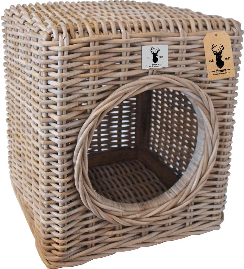 De Boony EST. 1941 rotan hocker is een ideale rustplaats voor katten omdat de kat zich in deze hocker lekker kan verstoppen. Bovendien is de hocker een moderne toevoeging aan het interieur. In de hocker kun je zachte kussens en kleden leggen om het nóg comfortabeler voor je kat te maken. Een bijpassend kussen is los verkrijgbaar en wordt niet standaard meegeleverd. Afmetingen 40 x 45 cm.