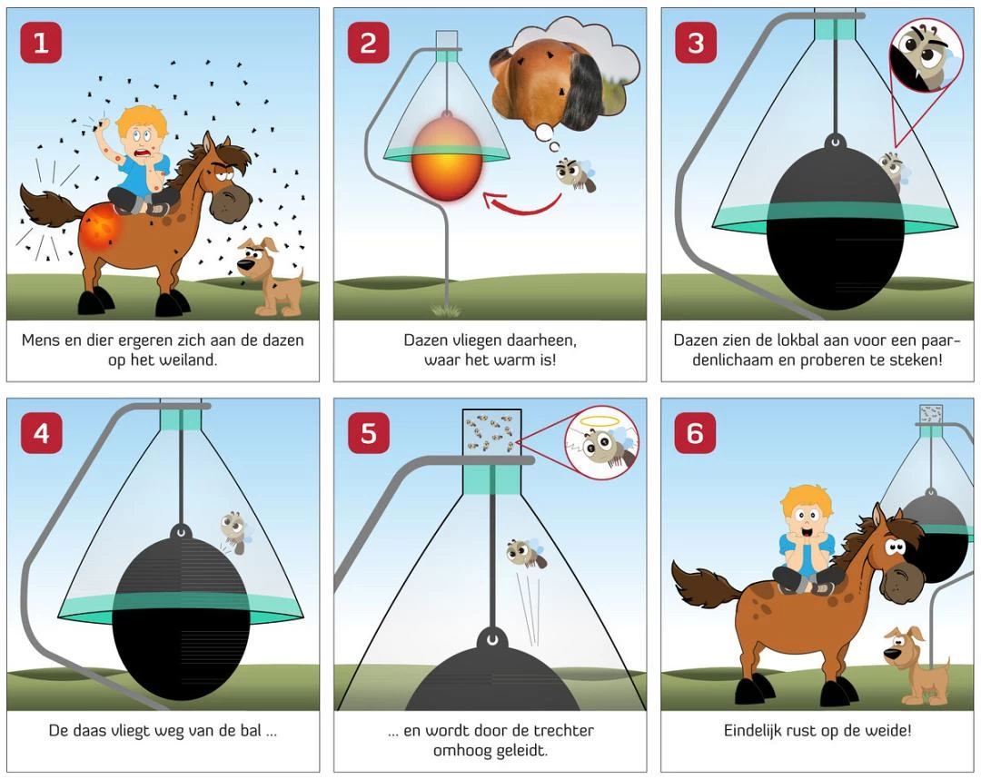 De Loer dazenval vangt dazen door de vrouwtjesdazen te misleiden. De zwarte bal wordt verwarmd door de zon enbeweegt lichtjes heen en weer in de wind.