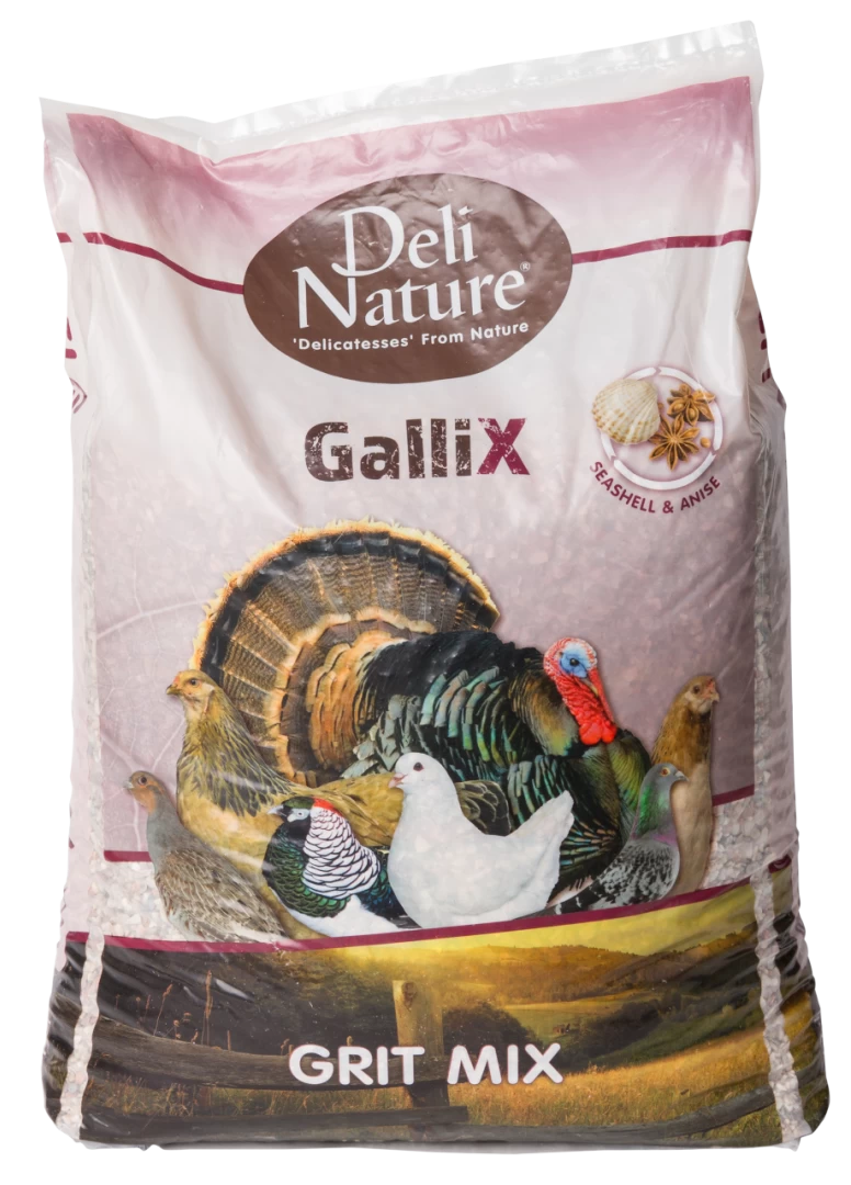 Deli Nature GalliX grit mix is een goede bron van calcium. Dit zorgt voor een goede vorming van het skelet en voor sterke en egale eischalen.
