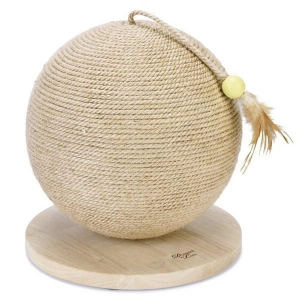 Met de leuk vormgegeven Designed by Lotte houten krabbol Balty kan je kat eindeloos spelen. De bol is voorzien van touw en heeft een koord met een bolletje en een veer.