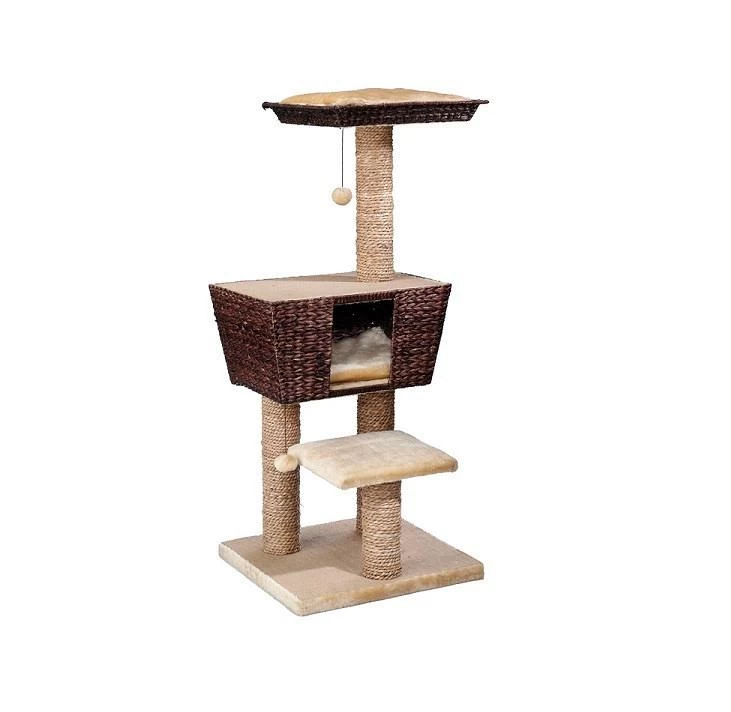 Gemaakt van zachte en toch scheurvaste waterhyacintbladeren. Met slaaphuisje en pluche ligvlakken die afneembaar zijn en tevens machinewasbaar op 30°C.