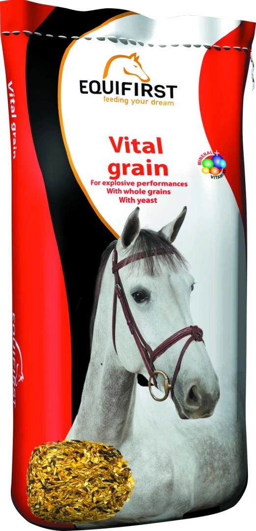 EquiFirst Vital Grain is een mengeling van volle granen en een brok die verrijkt is met vitaminen, mineralen en spoorelementen voor explosieve prestaties.
