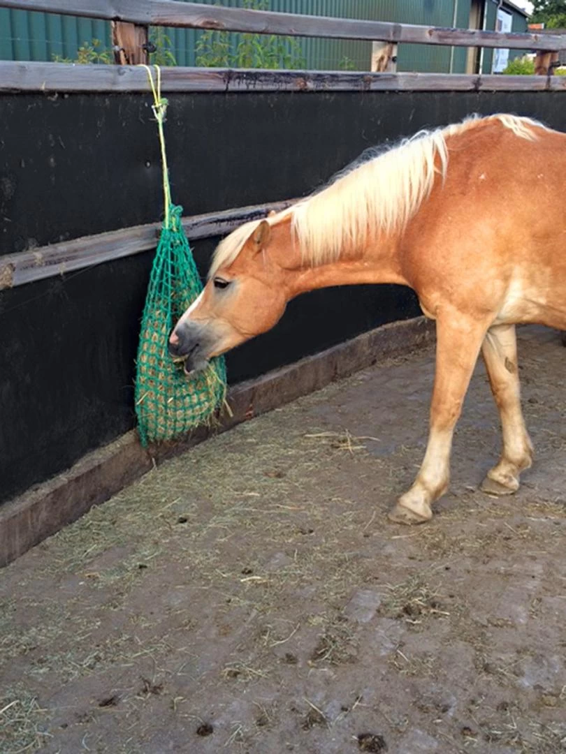 Hierdoor ligt het hooi niet op de grond en kun je zelf bepalen hoeveel hooi je pony of paard tot zijn beschikking heeft. Ideaal voor in de stal, trailer en voor onderweg.