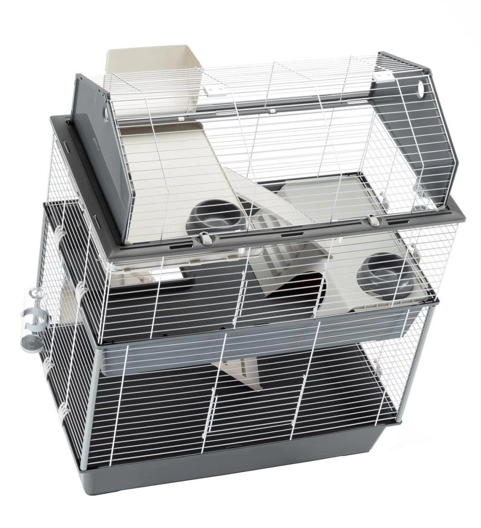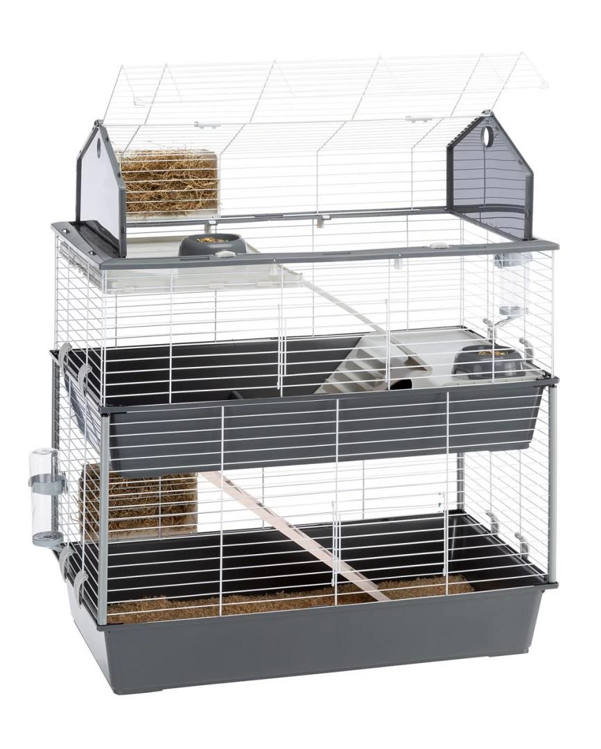 De Ferplast knaagdierkooi Barn 100 Double is dankzij de drie verdiepingen een ruim leefgebied met een groot vloeroppervlak voor konijnen en knaagdieren.