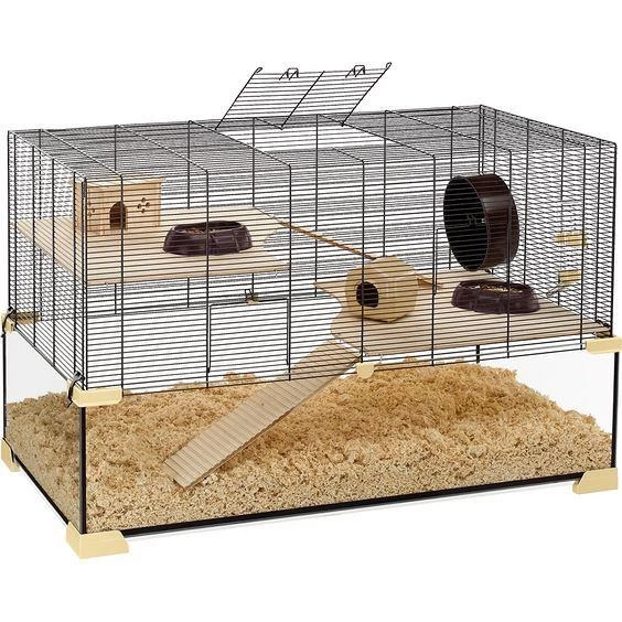 Dankzij de diepe onderbak kan jouw knaagdier naar hartenlust graven, holletjes maken en zich lekker verstoppen. De houten plateaus zijn op een speciale manier gemaakt waardoor deze waterbestendig zijn. Inclusief voerbakken, slaaphuizen, drinkfles, looprad, plateau en trappen.