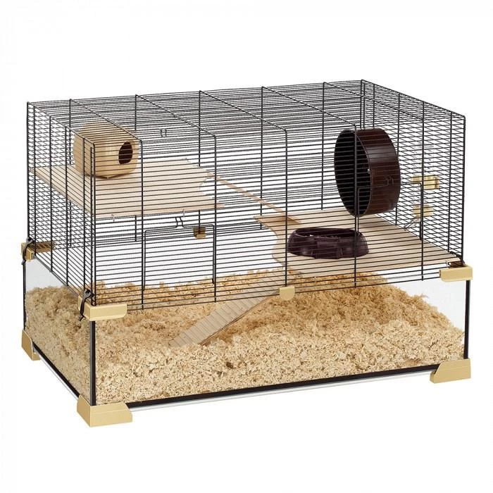Dankzij de diepe onderbak kan jouw knaagdier naar hartenlust graven, holletjes maken en zich lekker verstoppen. De houten plateaus zijn op een speciale manier gemaakt waardoor deze waterbestendig zijn. Inclusief voerbakken, slaaphuizen, drinkfles, looprad, plateau en trappen.