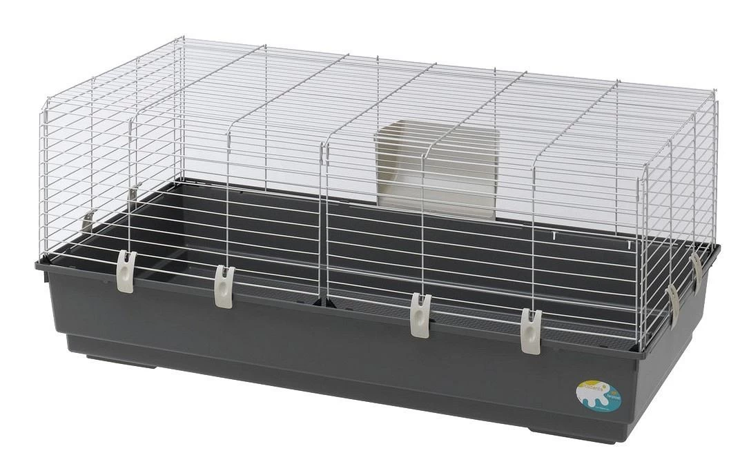 Groot kunststof binnenverblijf van het merk Ferplast voor konijnen of cavia’s.