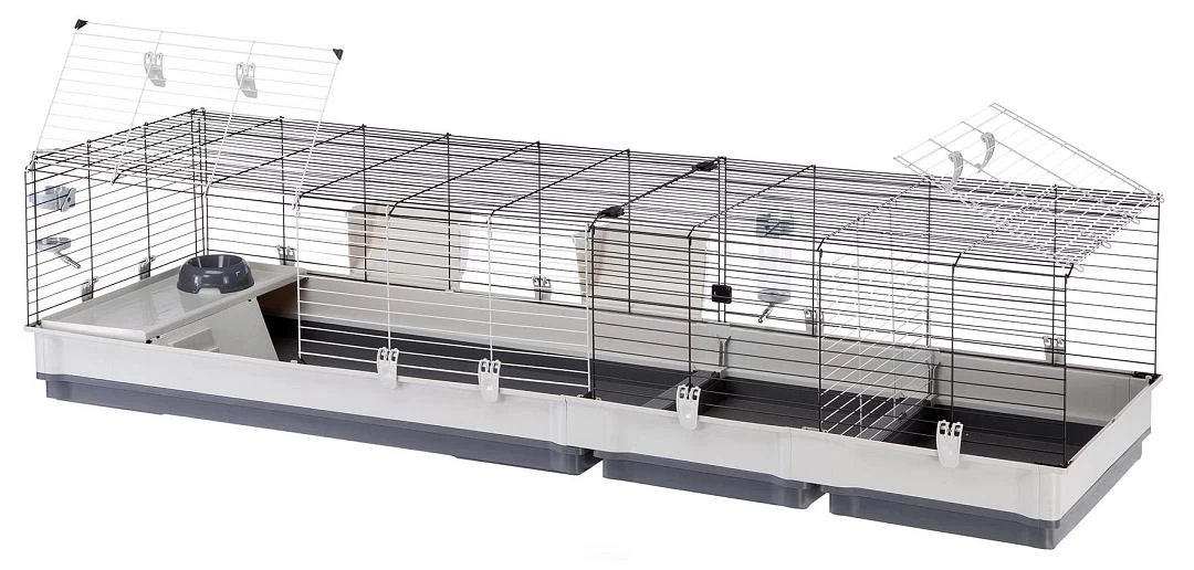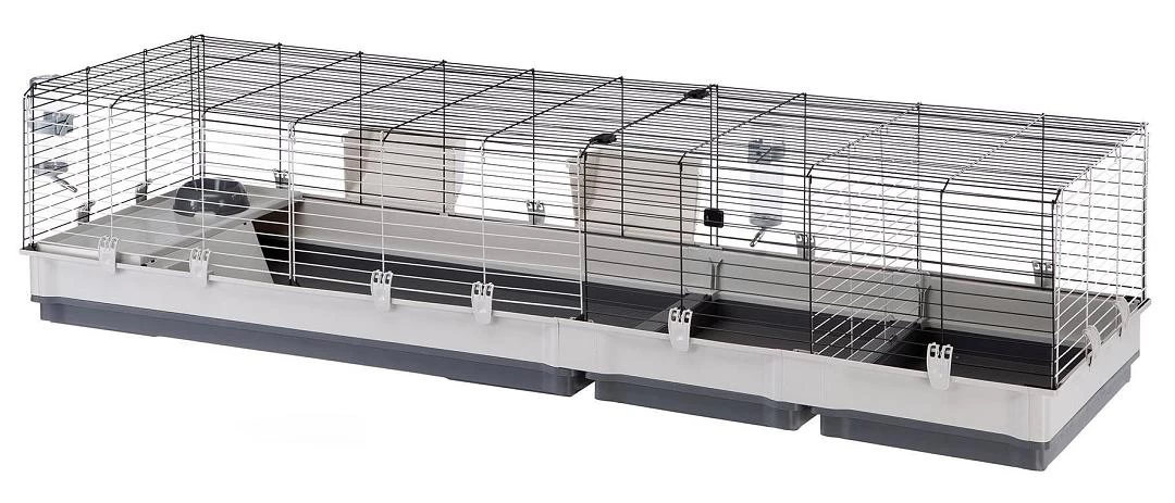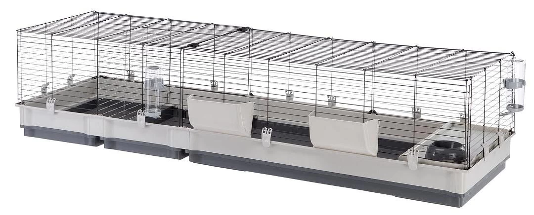 Ferplast konijnenhok Krolik 200 is een ruim hok met een groot vloeroppervlak. Dit konijnenhok wordt compleet geleverd met 1 voerbak, 2 hooiruiven, 2 drinkflessen en een kunststof huisje.