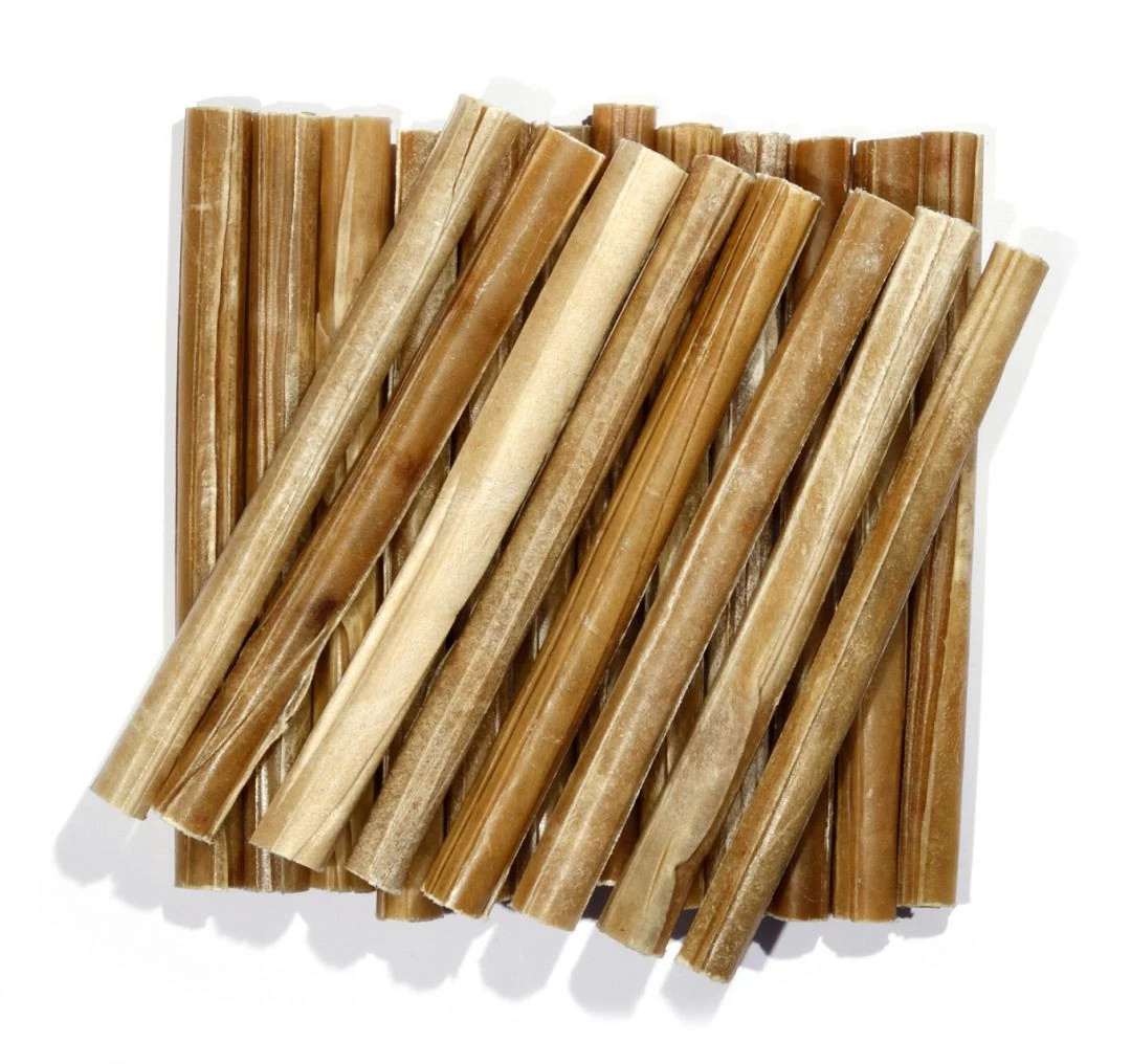 Deze geperste staven zijn een kauwsnack gemaakt van 100% runderhuid. Deze wordt gewassen, opgerold en dan geperst. Deze kauwsnack draagt bij aan het voorkomen van tandplak bij de hond. De staven zijn 20 mm dik en 25,5 cm lang. In een verpakking zitten 20 stuks. Totaal 80 tot 90 gram.