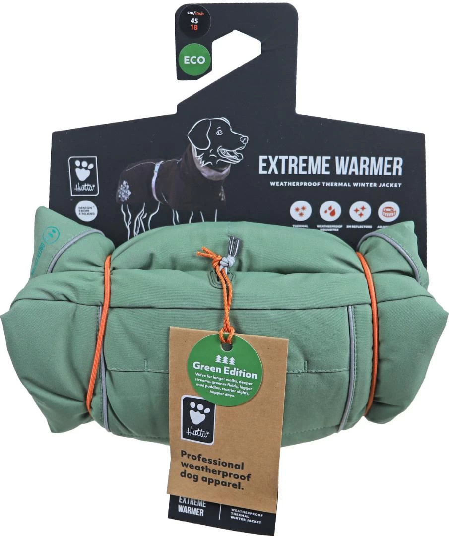 De Hurtta Extreme Warmer hondenjas houdt jouw hond warm, zelfs in de meest extreme omstandigheden. Door het gebruik van speciale folie in de voering reflecteert de jas de lichaamswarmte van de hond en geeft de jas extra warmte zonder dat er gebruik gemaakt wordt van een extra dikke vulling.