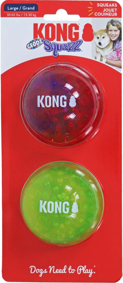 De Kong Squeez Geods Bal heeft een uniek ontwerp dat het apporteerplezier van jouw hond vergroot. De knetter- en piepgeluiden van de bal ontsteken het natuurlijk jachtinstinct van jouw hond. Het duurzame materiaal zorgt voor langer speelplezier. Het stuiteren van de bal vergroot de betrokkenheid van je hond, met name van puppy’s. De bal kan drijven en is dus geschikt om mee te apporteren op water.