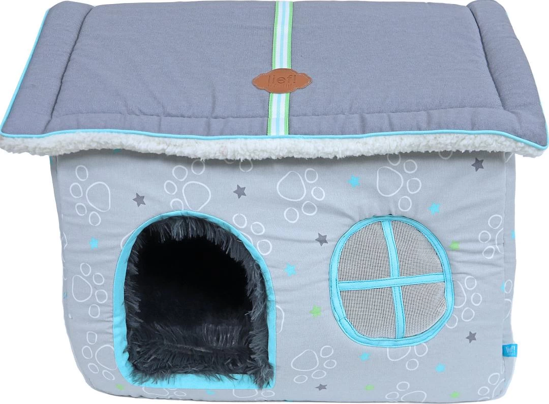 lief! lifestyle Boys Villa hond/kat is een super leuke villa voor je hondje of kat! De villa is door het zachte materiaal en de pluchen wanden een waar slaapparadijs, waar jouw huisdier zich heerlijk in terug kan trekken. De villa is niet alleen comfortabel maar ook een echte blikvanger met vele details, zoals pootjes print en Boys details!