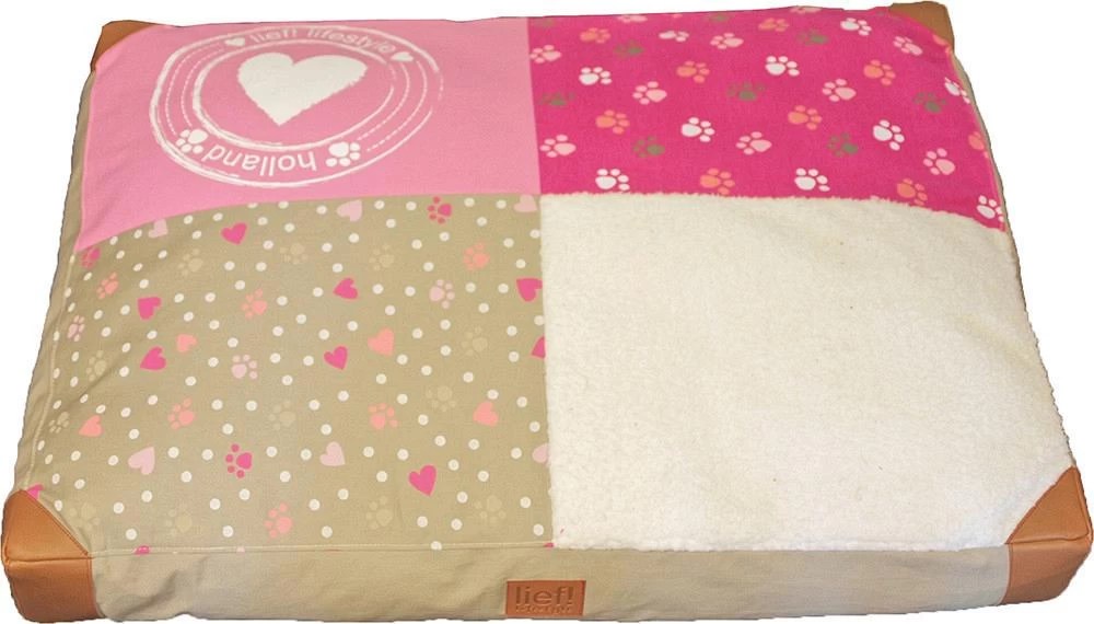 Het lief! lifestyle Girls loungekussen Patchwork is een hip hondenkussen van hoogwaardig materiaal.