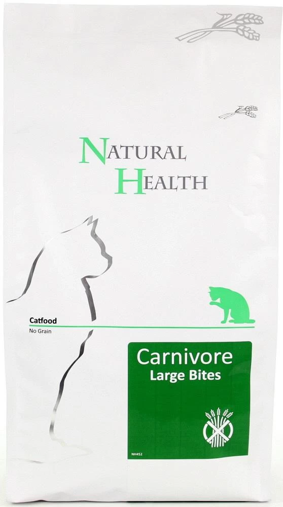 Natural Health Carnivore Large Bite is een graanvrije, op vlees gebaseerde kattenvoeding.