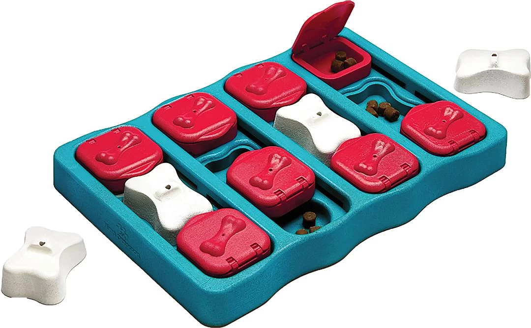 De Nina Ottosson Dog Brick is gemaakt met eenvoudig te openen en te sluiten compartimenten om traktaties in te verbergen en is uitgerust met afzonderlijke, verwijderbare puzzelstukjes met botten die een nog interessantere uitdaging bieden om lekkernijen te zoeken en te eten!