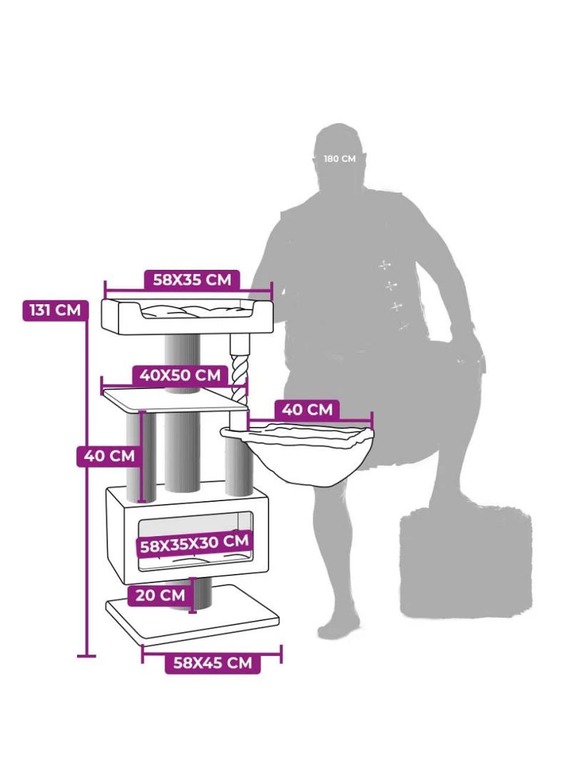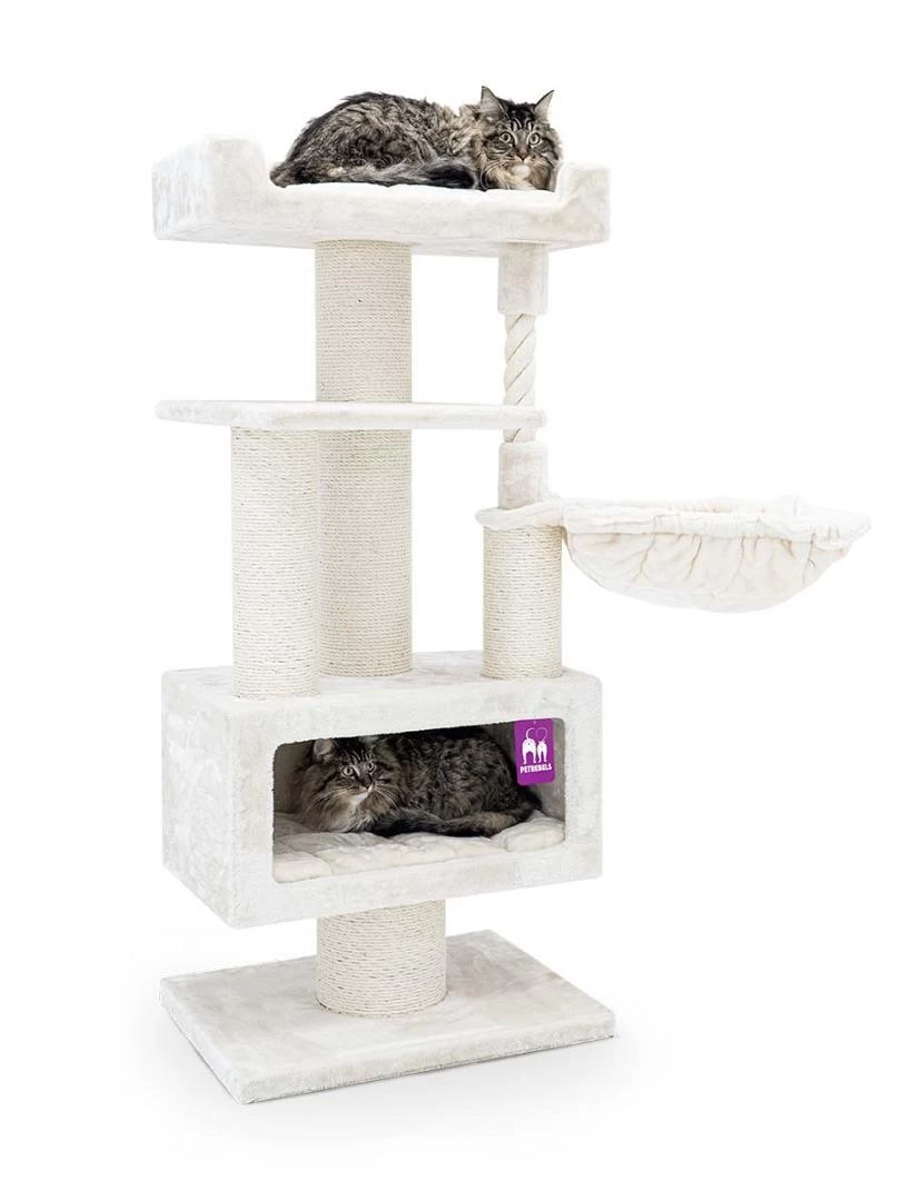Het Petrebels krabmeubel Lucky Basta is een robuust en luxe krabmeubel en een van de nieuwste aanwinsten in de Lucky Bastards collecties. De bodemplaat is extra dik en stabiel, de krabstammen zijn dik, de sisal is sterk, de manden zijn luxe en royaal en de pluche is van extra zachte kwaliteit. Wil jij jouw kat echt verwennen? Maak hem/haar dan gelukkig met de Parklane 131.