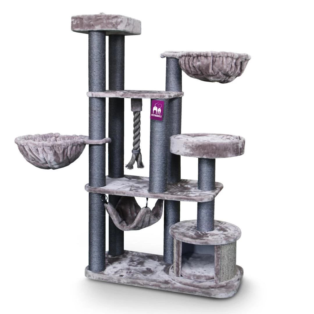 Het Petrebels krabmeubel Lucky Bastards Vista 170 is een totaalkrabpaal. Alles wat een kat nodig heeft om zich te vermaken zit in dit model. Of je nu een Maine Coon, een Noorse Boskat of een lapjeskat hebt, ze zullen allemaal staan te trappelen om deze gigant te beklimmen.