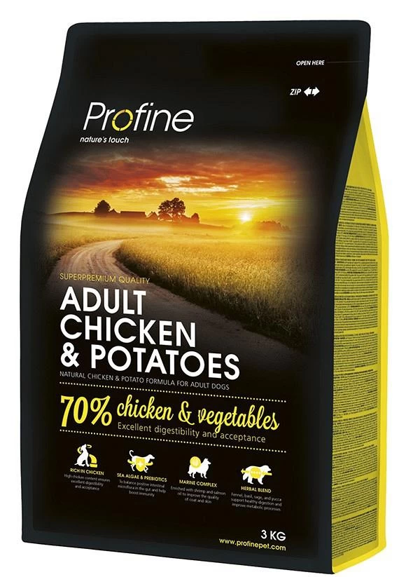 Profine Adult Chicken & Potatoes is een natuurlijke formule met kip en aardappel voor volwassen honden.