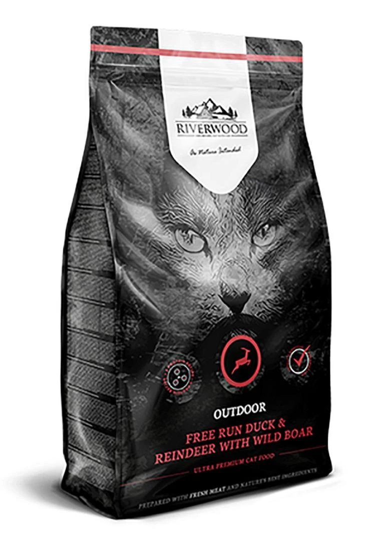 Riverwood Outdoor kattenvoer met eend en rendier verrijkt met natuurlijke antioxidanten beschermt jouw kat tegen invloeden van buiten door zijn immuunsysteem te verbeteren.