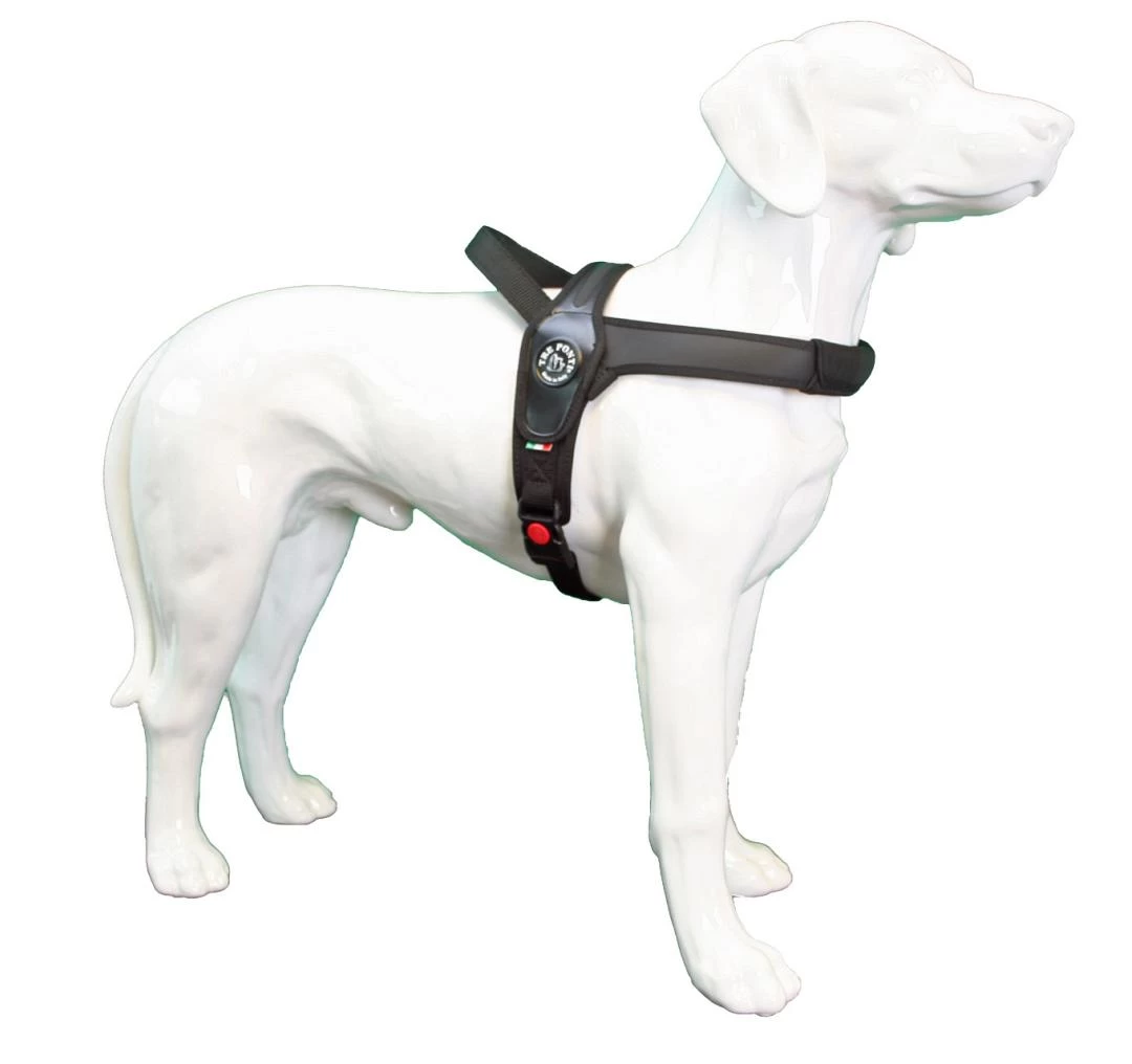 De Primo serie van Tre Ponti is ontwikkeld als ‘allround’ tuig en geschikt voor honden van 10 tot en met 60 kg. Het tuig gaat over het hoofd van de hond en wordt onderin ingesteld en vastgeklikt met een slot sluiting.