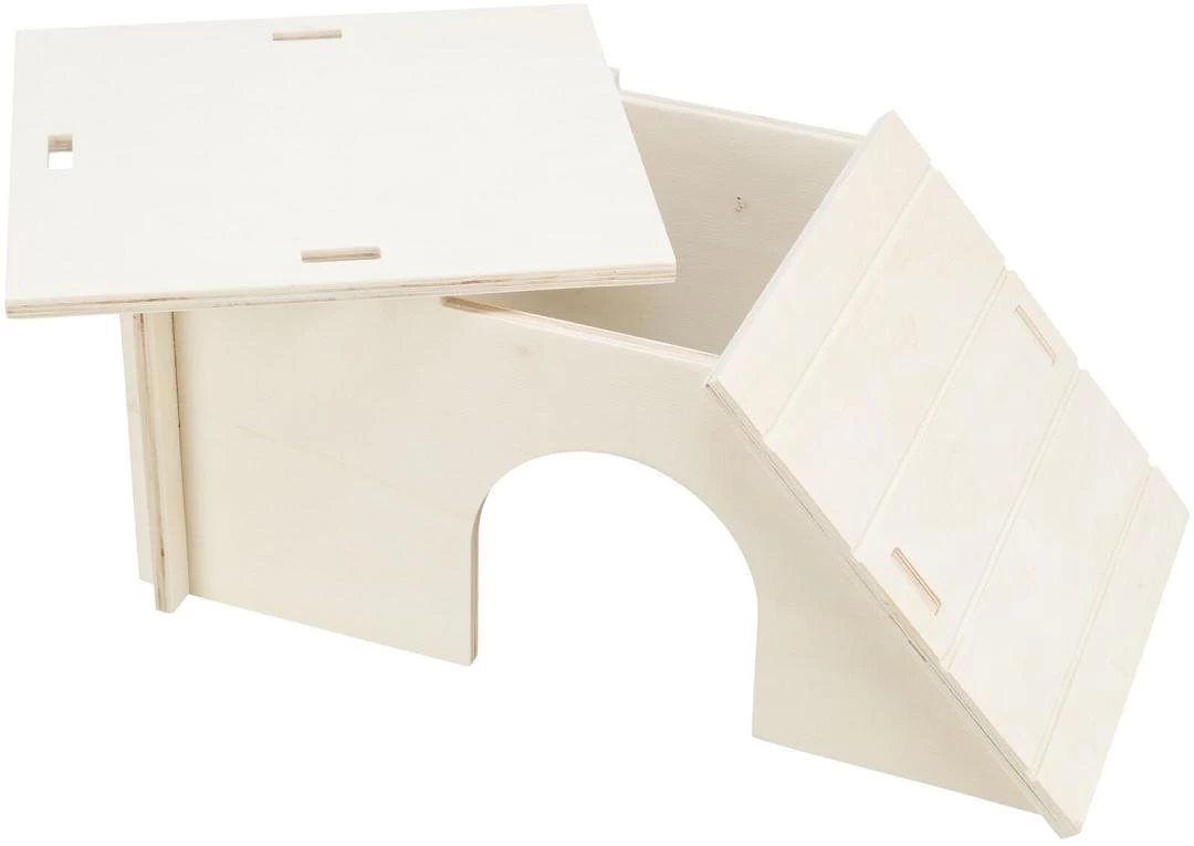 TRIXIE knaagdierhuis Bent is een diervriendelijk huisje voor jouw konijn, cavia of knaagdier, gemaakt van onbehandeld hout. Je kunt het huisje eenvoudig monteren dankzij het insteeksysteem, waarbij je de delen in elkaar schuif. HIerdoor zijn geen nietjes en spijkers nodig.