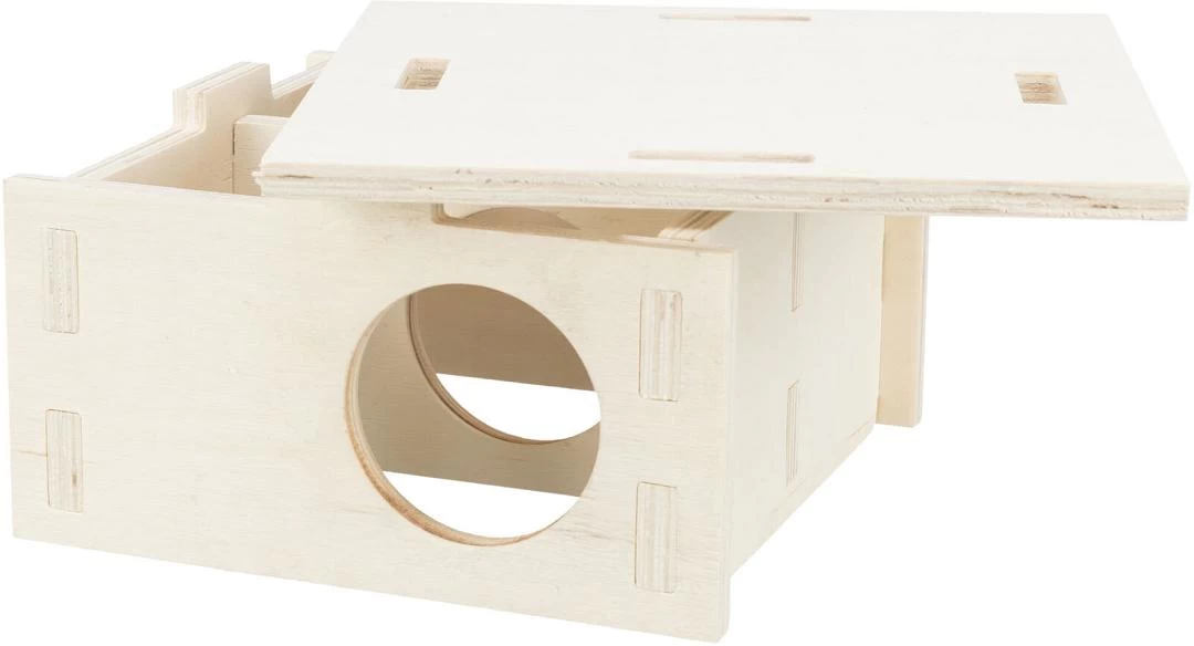 TRIXIE knaagdierhuis met 2 Kamers 20x10x20 cm is een heerlijk en diervriendelijk huisje voor jouw hamster of muis van onbehandeld hout. Het kamersysteem maakt een diervriendelijke, op het soort afgestemde, vormgeving van de opbouw mogelijk. Je kunt het huisje eenvoudig monteren dankzij het insteeksysteem, waarbij je de delen in elkaar schuif. HIerdoor zijn geen nietjes en spijkers nodig.