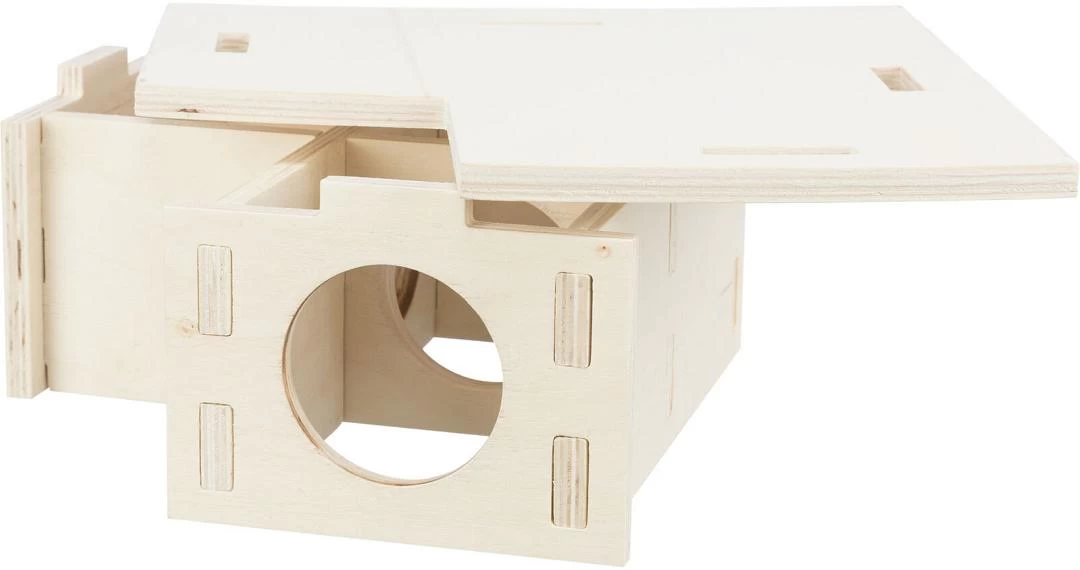 TRIXIE knaagdierhuis met 3 Kamers 25x10x25 cm is een heerlijk en diervriendelijk huisje voor jouw hamster of muis van onbehandeld hout. Het kamersysteem maakt een diervriendelijke, op het soort afgestemde, vormgeving van de opbouw mogelijk. Je kunt het huisje eenvoudig monteren dankzij het insteeksysteem, waarbij je de delen in elkaar schuif. HIerdoor zijn geen nietjes en spijkers nodig.