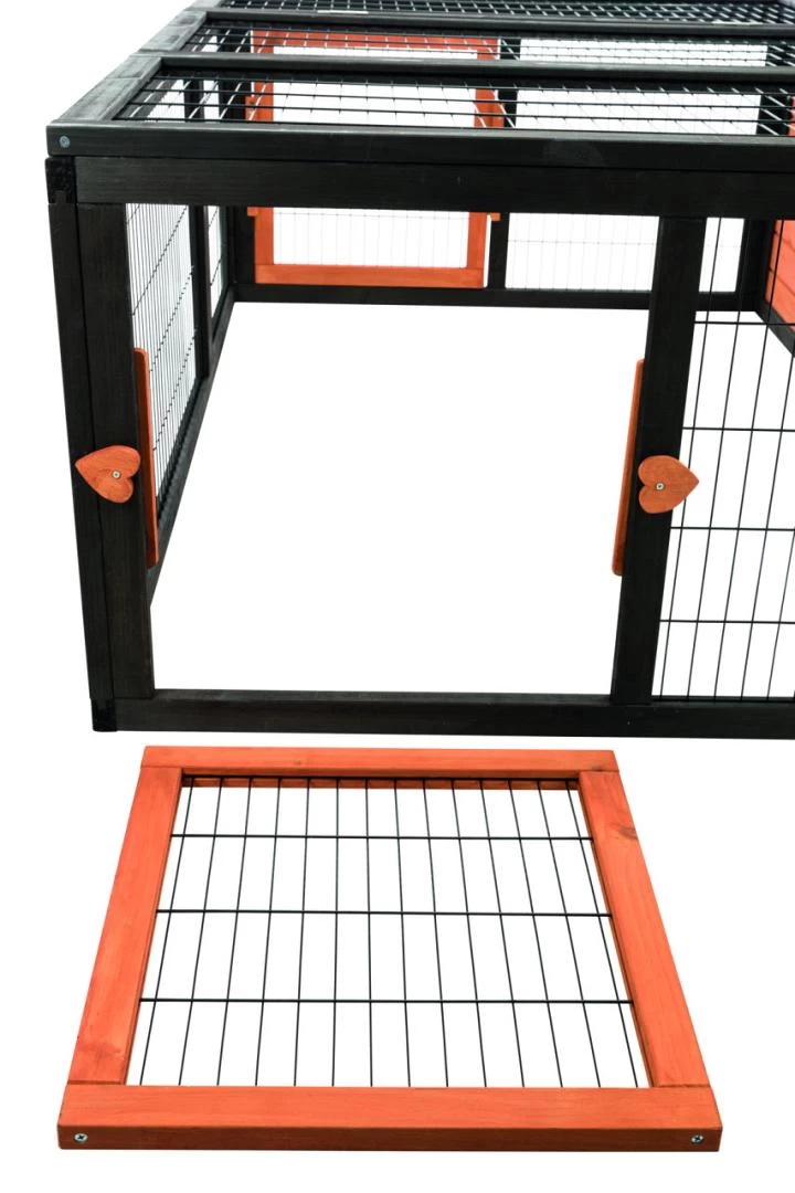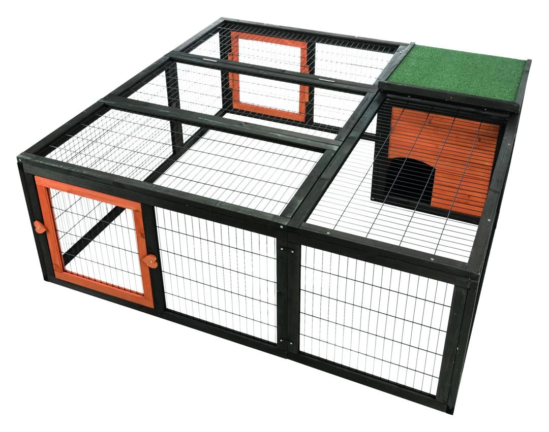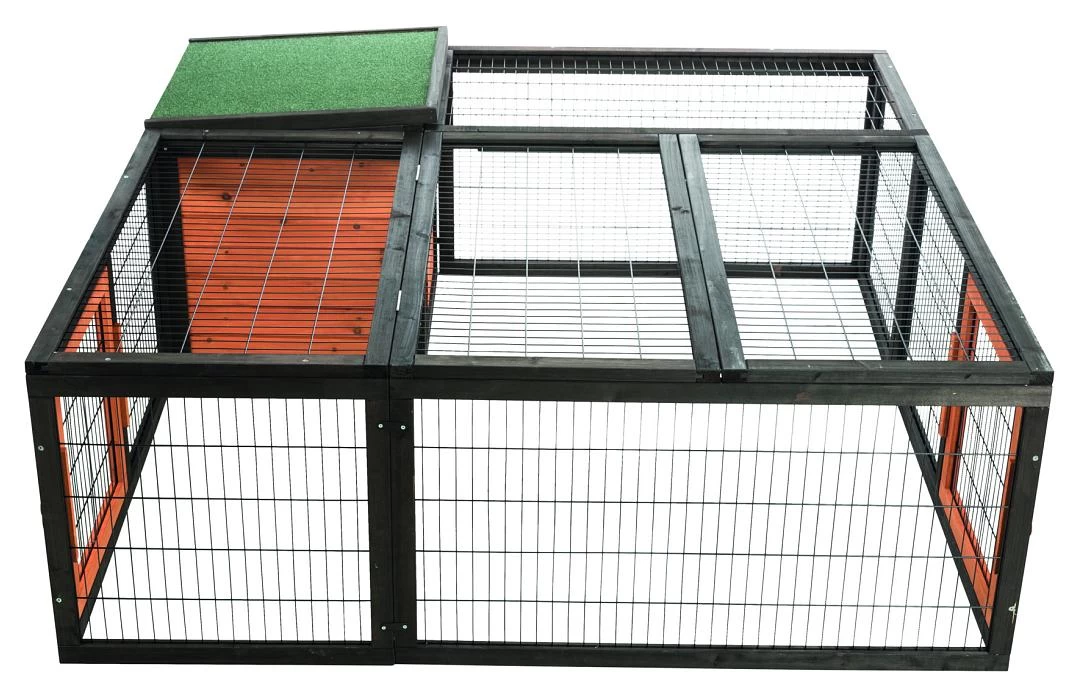 TRIXIE Natura Ren met Afdekking heeft een weerbestendig huis, met een dak dat van bovenaf is te openen. De ren heeft twee uitneembare deurtjes, zodat je er een klein dierverblijf tegenaan kan zetten.