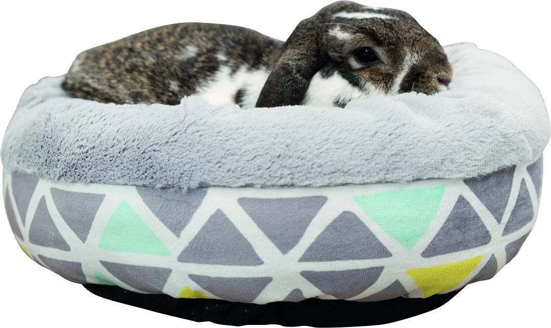 TRIXIE Relax-Mand Sunny geeft jouw konijn een fijn slaapplekje. De mand is gemaakt van pluche en heeft een polyester bekleding.